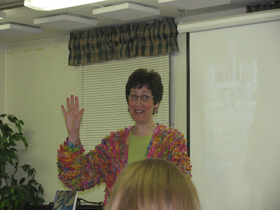 Her talk was hysterically funny. She described her early quilting adventures: not knowing about seam allowances, so the Lone Star Block came out much smaller than expected, not knowing how to miter a corner, so each one was bad in a different way, the sheets (including the label) used for backing. A memorable line: It's easy to get small quilting stitches. Use cotton thread, fabric, and batting, and boil it.